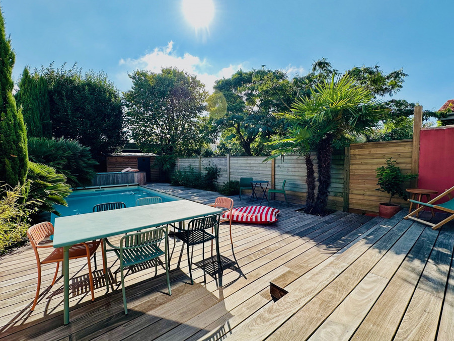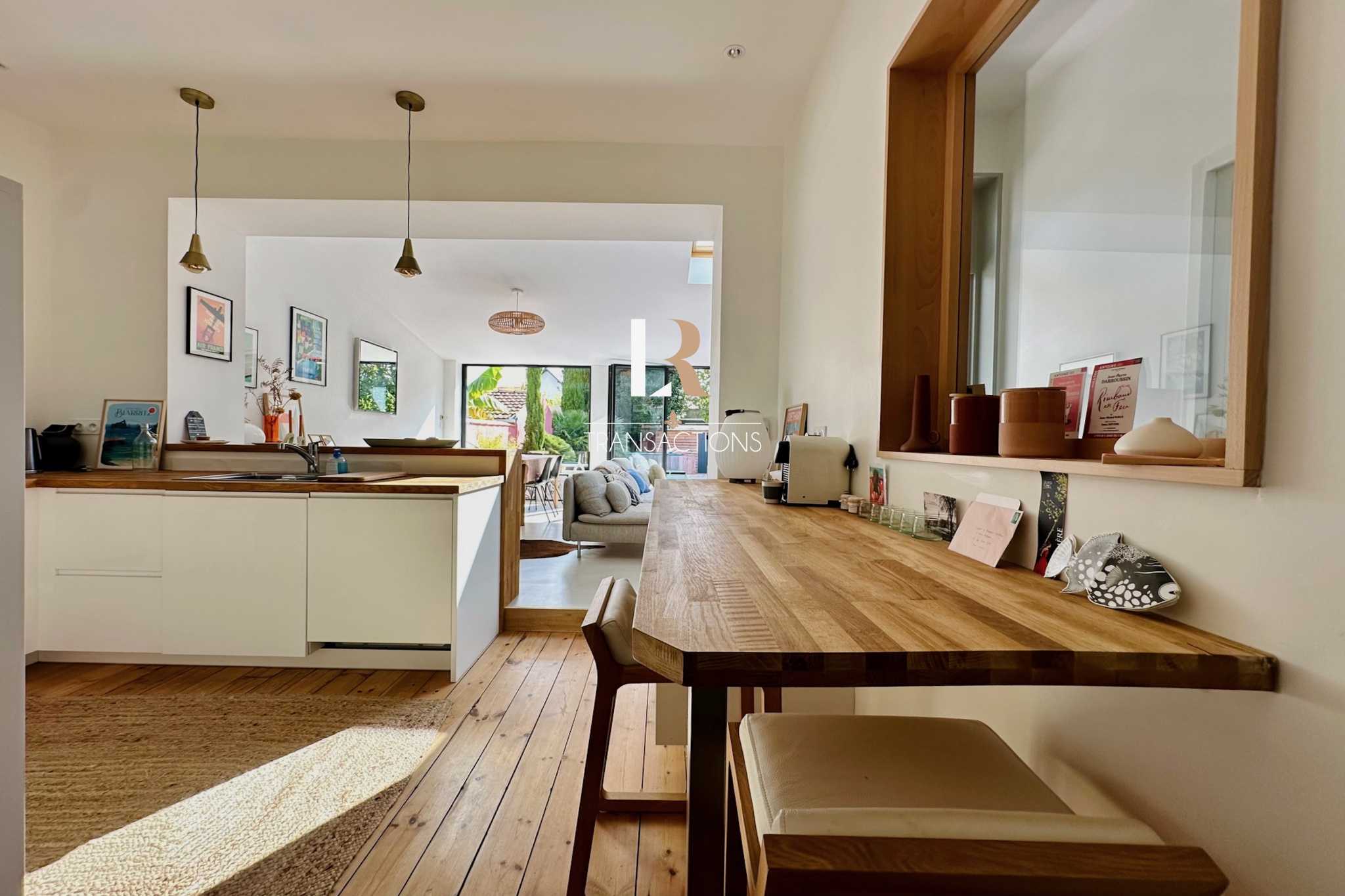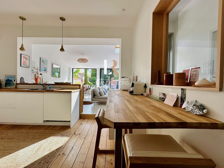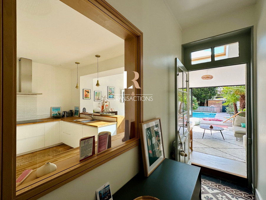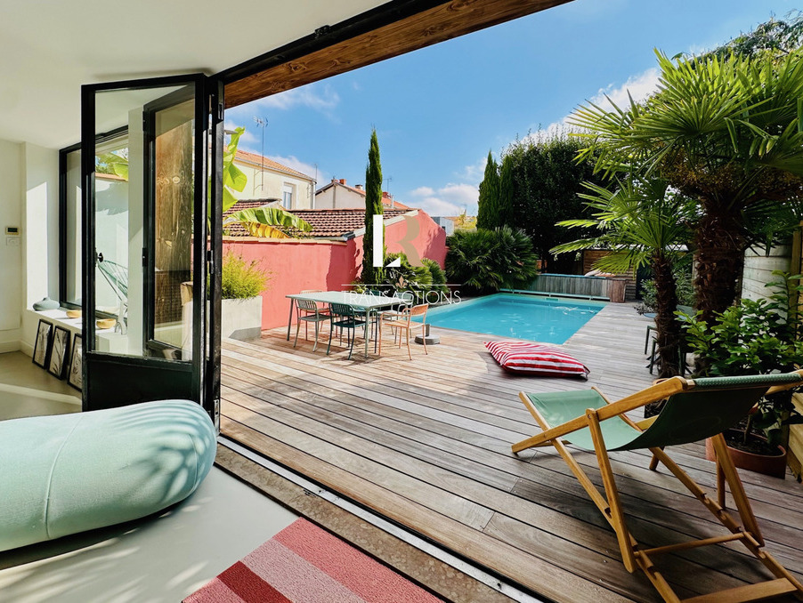 LR transactions vous propose : Au calme, sur le quartier de La Genette, à 10 min à pieds de la place de verdun, jolie maison de caractère traversante extrêment lumineuse avec piscine, entiérement rénovée avec goût. Derrière sa jolie façade, vous pénétrez pra une entrée sur carreaux de ciment proposant une très belle perspective sur l'espace de vie prolongé par le l'extérieur végétalisé avec pisicine. Sur votre gauche, vous trouverez un premier salon très cocooning, et son espace bureau, il dispose d'une cheminée fonctionnelle. Une cuisine très agréable s'ouvre sur le salon-séjour très lumineux grâce à ses ouvertures acordéon en acier, ce qui lui confère un charme redoutable. Une buanderie aménagé et un wc indépendant avec lave-main complète le rez- de-chaussée. Vous y trouverez également l'accès à la cave. Le 1er étage se compose d'une suite parentale donnant côté jardin, avec salle d'eau et dressing. Vous y trouverez également une seconde chambre avec placard, une salle d'eau, et un wc indépendant. Une troisième chambre entièrement pensé par les propriétaires se situe au 2ème étage, elle est mansardée mais propose tout de même une très belle surface avec salle d'eau et placard aménagés. Côté extérieur, une belle terrasse en bois exotique avec pisicine fera le bonheur de vos journées d'été. Très agréable extérieur grâce à la végétation qui l'entoure. Le prix d'achat est de 949.500EUR HAI, dont 4% de frais d'honoraire d'agence TTC à la charge de l'acquéreur, soit 915.000EUR Net vendeur et 34.500EUR TTC d'honoraires d'agence.Diagnostics réalisés le 01/10/2024, informations énergétique sur le bien classé D et classé D pour les émissions de gaz à effet de serre. Les informations concernant les risques auxquels ce bien est exposé sont disponibles sur: https://www.geoportail.gouv.fr/