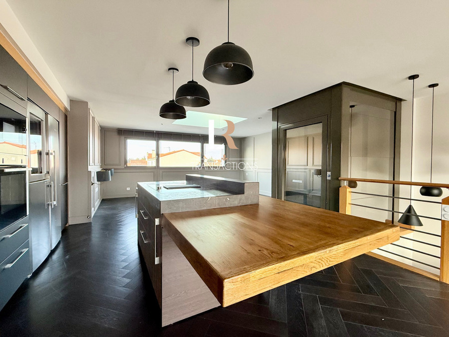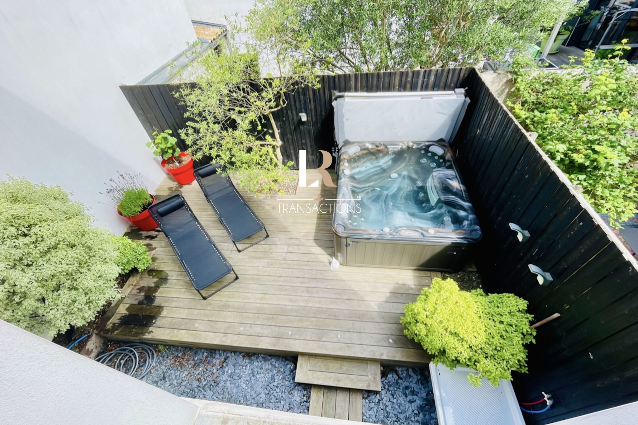 Cette jolie maison en Triplex de 2008 a été conçu comme un appartement, une entrée spacieuse avec rangements donne accès à un majestueux ascenseur aux normes PMR desservant les trois niveaux. La pièce de vie, occupant le dernier étage, bénéficie d'une magnifique luminosité. La jolie cage vitrée de l'ascenseur crée la séparation naturelle entre le salon et la cuisine haut de gamme disposant d'un bel îlot et d'un espace repas s'ouvrant sur une jolie terrasse exposée Sud. Ces deux pièces bénéficient d'inserts ouverts parfaits pour vos soirées d'hiver. Le niveau inférieur, toujours très lumineux dessert trois chambres, chacune bénéficiant d'un dressing et d'une salle d'eau privative (avec wc pour la chambre parentale). Vous y trouverez également un wc indépendant. En rez-de-jardin, une salle de sport (pièce de loisir, bureau, 4ème chambre..) s'ouvre sur un patio sans vis-à-vis avec jacuzzi. Côté fonctionnel, un espace buanderie ainsi qu'un garage complète ce joli bien d'exception aux prestations de qualité. Cette maison est classé A et bénéficie d'une climatisation réversible dans l'ensemble des pièces. Le prix d'achat est de 1.102.500EUR HAI, dont 5% de frais d'honoraire d'agence TTC à la charge de l'acquéreur, soit 1.050.000EUR Net vendeur et 52.500EUR TTC d'honoraires d'agence. Diagnostics réalisés le 23/07/2020, informations énergétique sur le bien classé B et classé A pour les émissions de gaz à effet de serre.
