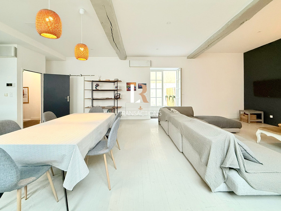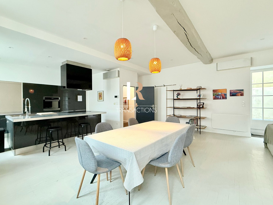 LR Transactions vous propose : A deux pas du vieux port et de la coursive, dans une rue calme du centre-ville, jolie maison de ville avec terrasse sans vis-à-vis, double garage et un appartement T3. Un hall d'entrée avec rangements vous accueille et vous invite à emprunter l'escalier afin d'y découvrir la spacieuse pièce de vie de plus de 60m2 située au 1er étage. Elle dispose d'une belle luminosité grâce à sa hauteur sous plafond, et ses ouvertures traversante. Vous y trouverez d'une part une jolie cuisine avec ilôt entièrement équipée, un espace repas, ainsi qu'un salon chalereux avec cheminée. Elle donne accès à une terrasse de 20m2 sans vis-à-vis, parfaite pour y déjeuner ou se détendre en toute intimité. Un bureau, une buanderie et un wc complètent ce niveau.