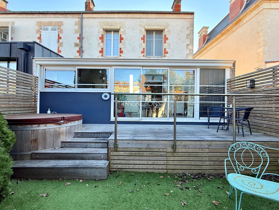 Une belle entrée s'ouvre sur l'espace de vie, vous y trouverez un premier salon avec cheminée, ainsi qu'un séjour avec un second salon, s'ouvrant sur une véranda avec cuisine ouverte. Cette véranda donne accès à la terrasse avec jacuzzi et son charmant jardinet. Deux petites dépendances dont une isolée se trouve au fond du jardin. Un joli escalier ancien dessert les étages, au 1er, vous trouverez deux chambres spacieuses, un bureau (10m2) et une salle d'eau avec wc. Au second, deux chambres mansardées, et une salle de bain avec wc. Côté fonctionnel, un garage ainsi qu'une buanderie avec sauna complète cette jolie maison. Côté extérieur, vous apprécierez la cour d'accueil qui vous permettra d'être en retrait de la rue bien que très calme. Egalement le jardinet avec sa terrasse et son jacuzzi seront parfaits pour des moments détente.