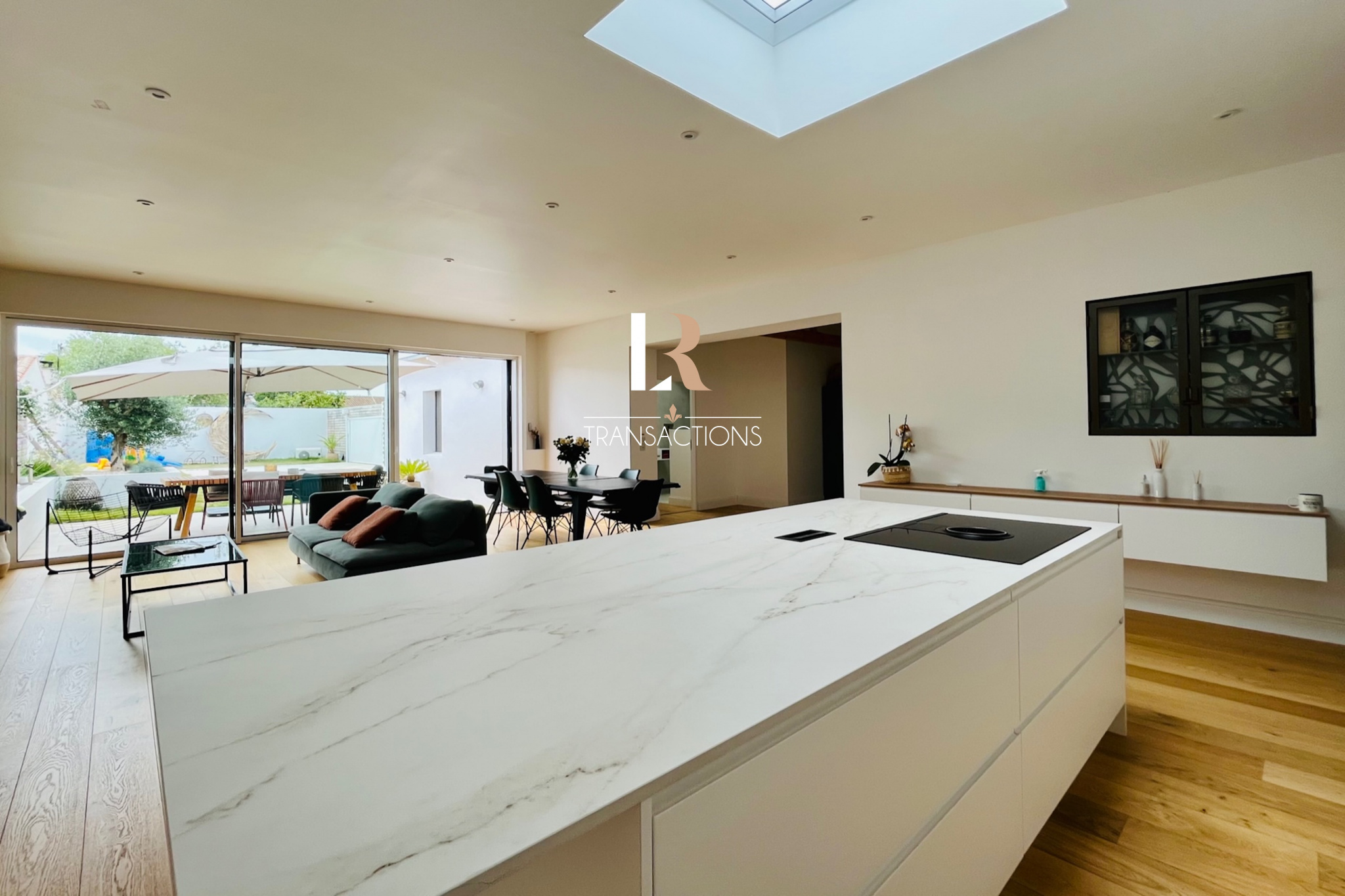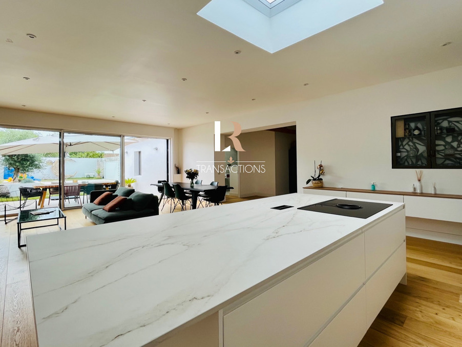LR Transactions vous propose en exclusivité : Dans une rue calme, à 20min à pieds du marché et avec accès rapide à la gare, jolie maison de plain-pied, entièrement rénovée en 2021 avec jardin Ouest, piscine et garage. Une spacieuse entrée aménagée avec banc et penderie, s'ouvre sur la pièce de vie lumineuse grâce à son puit de jour et ses grandes baies offrant une vue très agréable sur le jardin. Elle abrite une jolie cuisine avec ilot central très fonctionnelle, et profite d'un accès directement au garage. Côté nuit, vous disposerez de trois chambres dont une suite parentale avec dressing, salle d'eau et son wc séparé, vous apprécierez la vue sur la pisicne. Une spacieuse salle de bain avec douche profite aux deux autres chambres. Un wc indépendant avec lave-main, une spacieuse buanderie et un garage carrelé viennent compléter cette jolie maison. A l'extérieur, un beau jardin paysagé exposé Ouest, vous offre un premier espace déjeuner sur terrasse carrelée et à l'abris de l'olivier. Dans son prolongement, une jolie piscine carrelée et chauffée avec volet immergé sera parfaite pour vos journées d'été. Tout comme la cuisne d'été et sa douche extérieure. Cette maison profite d'un très bon DPE, chauffage au sol par pompe à chaleur, adoucisseur... et d'un agencement très fonctionnel au quotidien. Le prix d'achat est de 847.500EUR HAI, dont 4% de frais d'honoraire d'agence à la charge de l'acquéreur soit 815.000EUR Net vendeur et 32.500EUR TTC d'honoraires d'agence. Informations énergétiques sur le bien classé B indice 84 et classé A indice 2 pour les émissions de gaz à effet de serre. Les informations concernant les risques auxquels ce bien est exposé sont disponibles sur: https://www.geoportail.gouv.fr/
