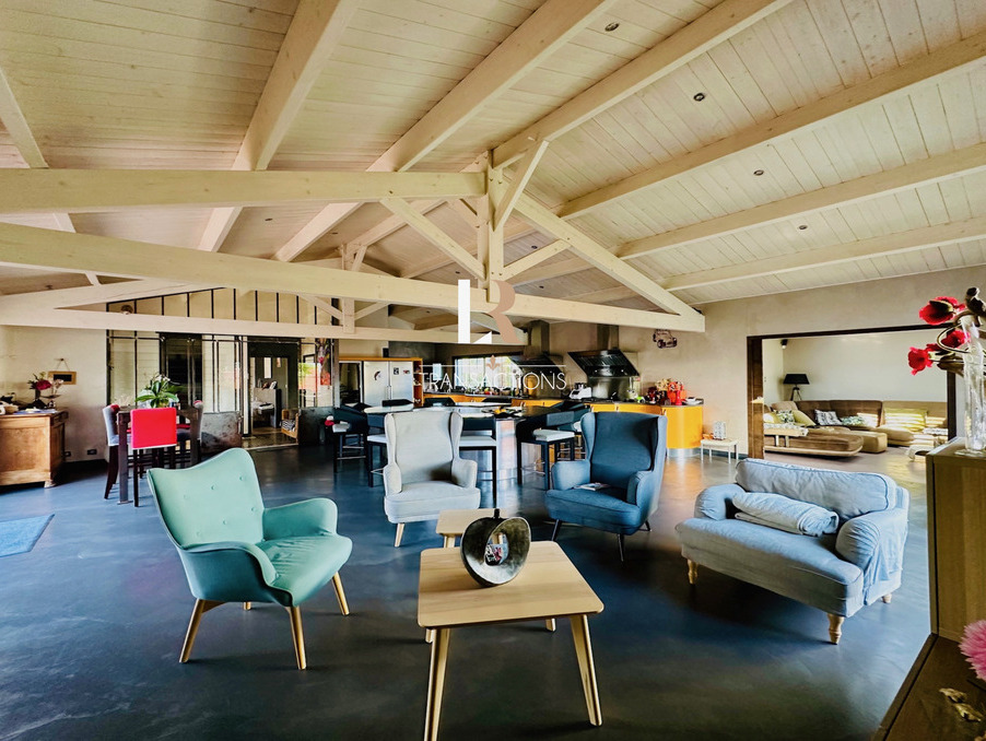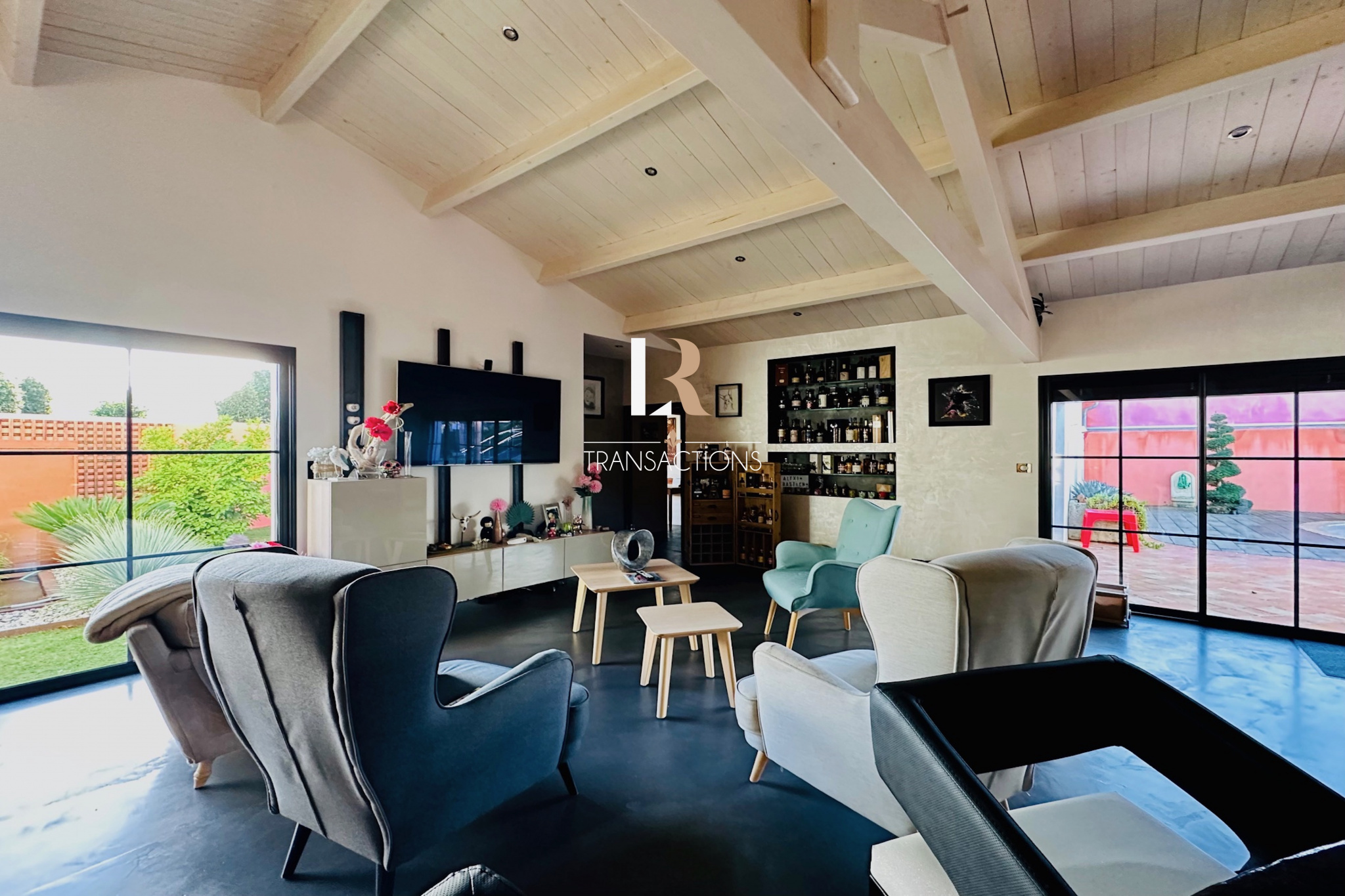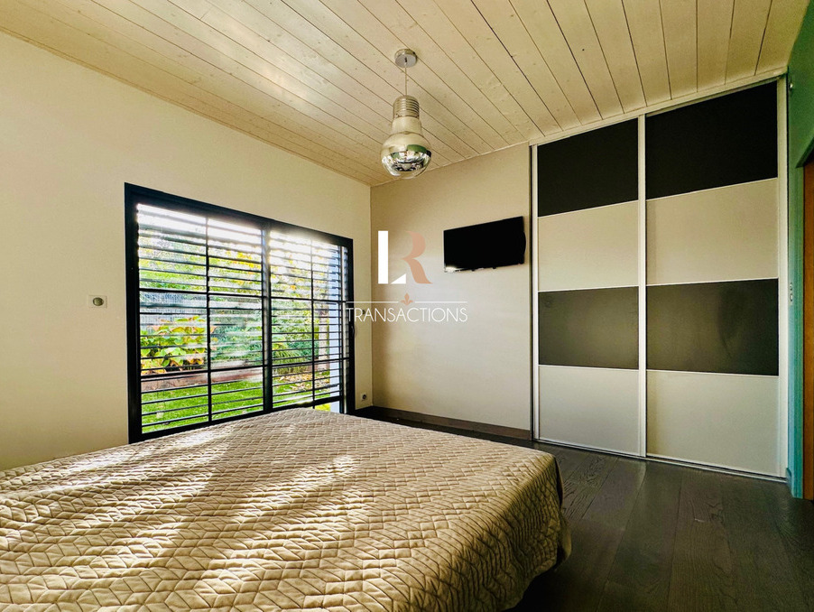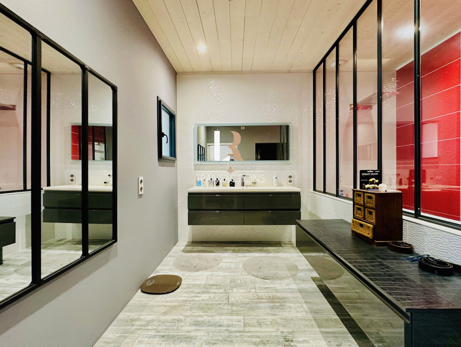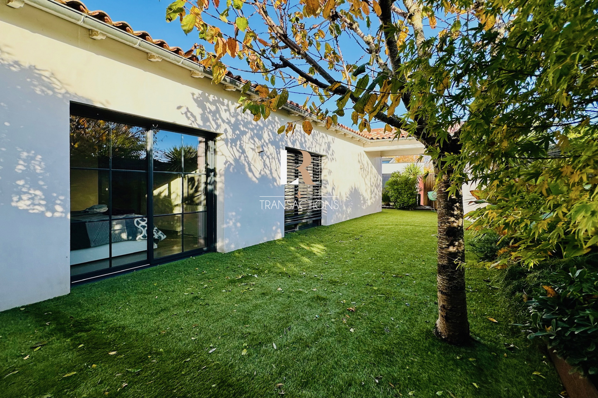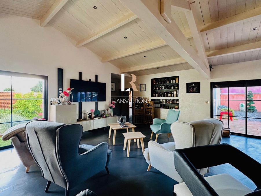 LR Transactions vous propose : En plein bourg de Lagord, à deux pas des commerces, de l'école et des transports, spacieuse maison entièrement de plain pied avec triple garage, multiples stationnements sur une parcelle de 1100m2 exposée plein Sud. Au calme, dans une impasse, vous accédez par un portail permettant de stationner de multiples véhicules grâce à sa cour d'accueil, son porche et ses trois garages (chauffés avec portes automatiques). Une belle entrée avec placard s'ouvre sur une spacieuse pièce de vie de plus de 90m2 par une élégante baie atelier sur mesure. Cette pièce de vie profite d'un plafond cathédrale et d'une triple exposition, cette dernière s'ouvre sur les extérieurs par une baie à galange. Vous trouverez également une spacieuse arrière cuisine buanderie attenante à la cuisine entièrement équipée avec de l'életroménager (plaques à induction, plancha, friteuse, ice maker, hottes roblin...). Dans la continuité de la pièce de vie, un salon TV avec jacuzzi et sa jolie vue sur un patio paysagé et sa cascade, sera parfait pour vos moments de détente. Côté nuit, vous profiterez une spacieuse suite parentale avec salle d'eau, dressing et sa vue sur la piscine. A l'autre extrémité de l'espace à vivre, vous trouverez quatres chambres dont une avec sa propre salle d'eau, et une salle d'eau indépendante. Chaque chambre s'ouvre sur les extérieurs, certaines sur patio, d'autres sur le jardin intimiste. Pour les amateurs de vin, une magnifique cave voutée de plus de 40m2 avec son bar, accueillera votre collection de bouteilles. Côté extérieur, tout les espaces sont paysagés, patio, jardin, une piscine en mosaîque de 12m de long dispose de deux hauteur de bassin différentes, parfaite pour le plaisir des petits comme des grands. Une cuisien d'été avec pergola amovible et éclairages intégrés, peut si vous le souhaitez se fermer intégralement par des portes coulissantes en verre. Cette dernière dispose de chauffage extérieurs. Cette maison intégralement de plain pied ne manque absolument de rien, bien unique sur la marché ! Le prix d'achat est de 1.599.000EUR HAI, dont 4% de frais d'honoraire d'agence TTC à la charge de l'acquéreur, soit 1.540.000EUR Net vendeur et 59.000EUR TTC d'honoraires d'agence.Diagnostics réalisés le 22/03/2023, informations énergétique sur le bien classé B et classé A pour les émissions de gaz à effet de serre. Les informations concernant les risques auxquels ce bien est exposé sont disponibles sur: https://www.geoportail.gouv.fr/