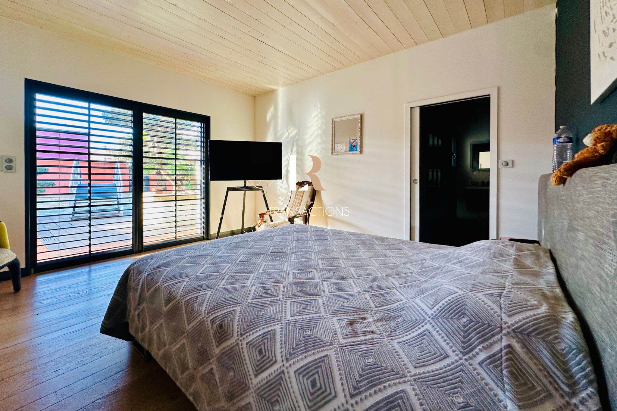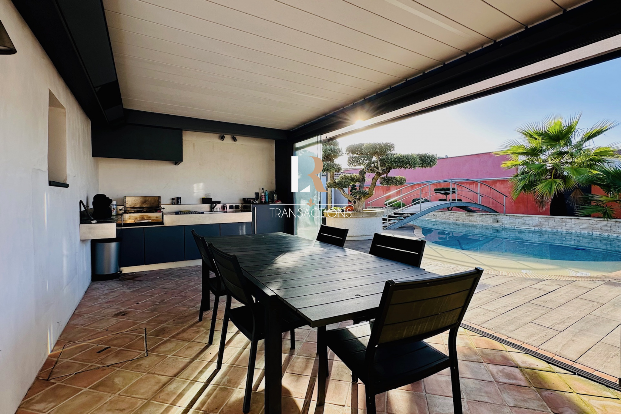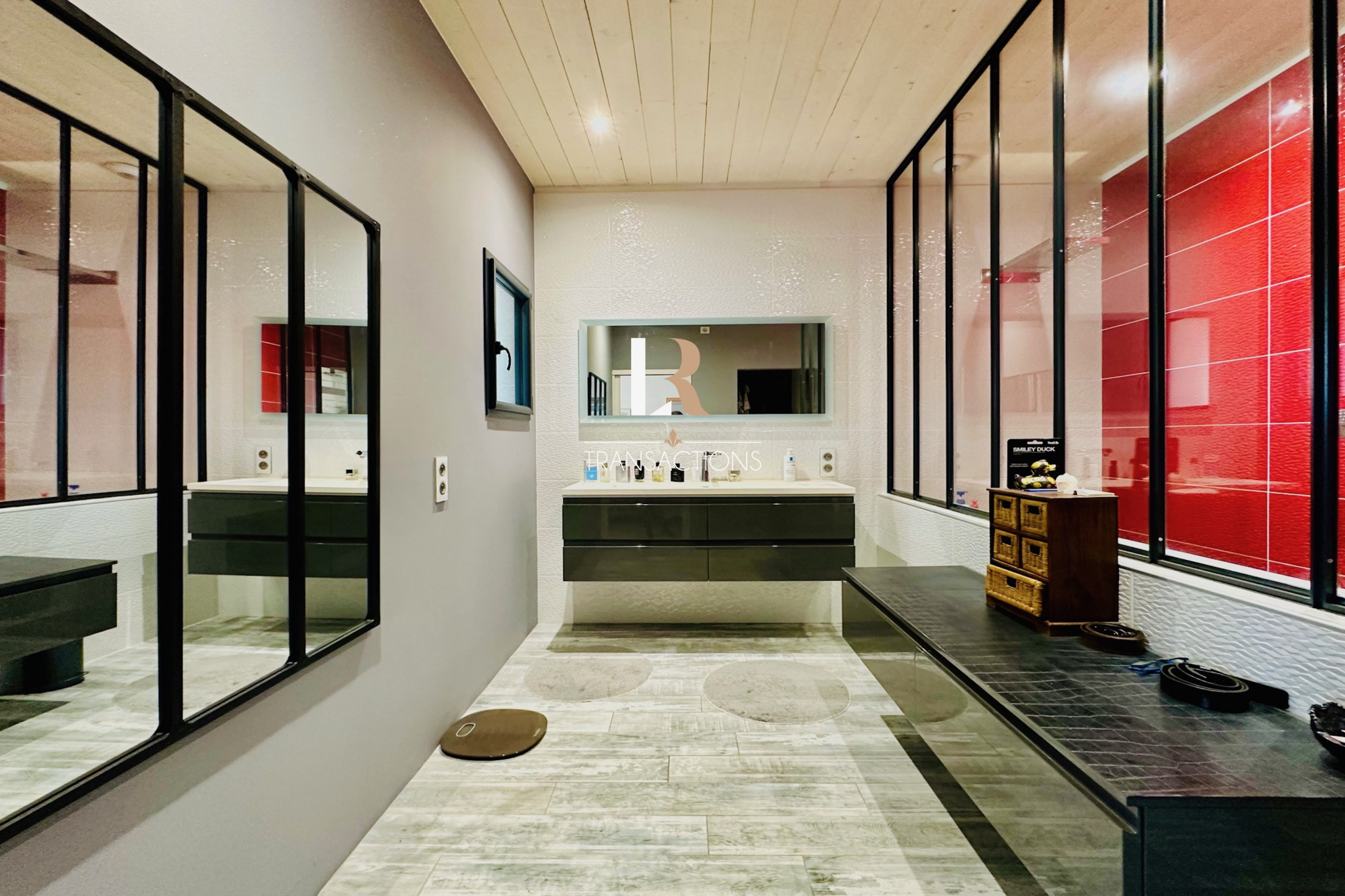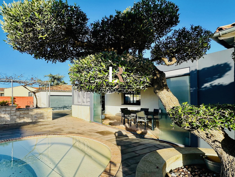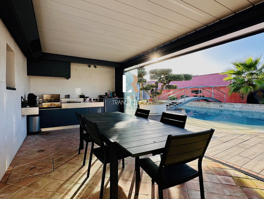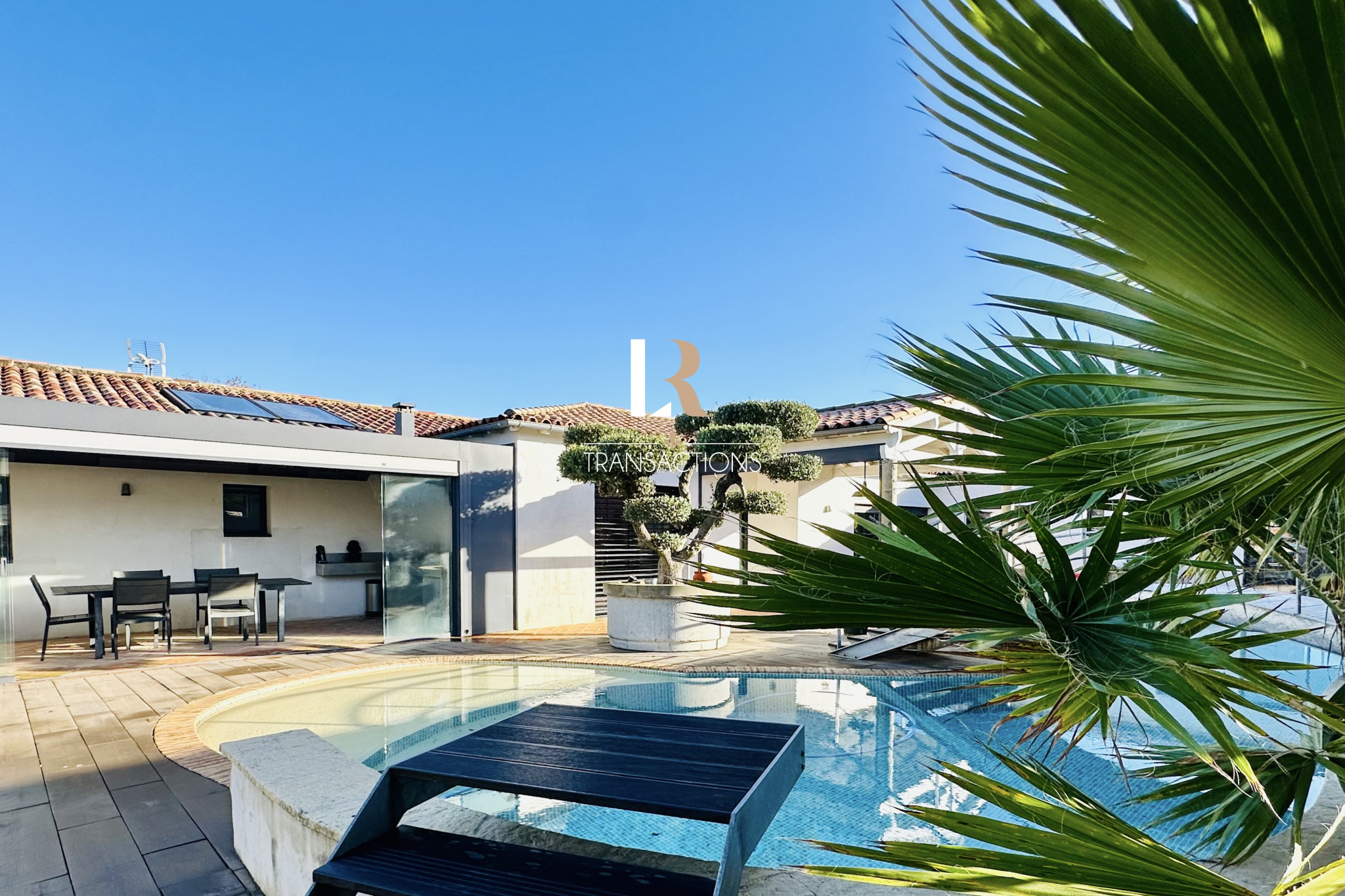 LR Transactions vous propose : En plein bourg de Lagord, à deux pas des commerces, de l'école et des transports, spacieuse maison entièrement de plain pied avec triple garage, multiples stationnements sur une parcelle de 1100m2 exposée plein Sud. Au calme, dans une impasse, vous accédez par un portail permettant de stationner de multiples véhicules grâce à sa cour d'accueil, son porche et ses trois garages (chauffés avec portes automatiques). Une belle entrée avec placard s'ouvre sur une spacieuse pièce de vie de plus de 90m2 par une élégante baie atelier sur mesure. Cette pièce de vie profite d'un plafond cathédrale et d'une triple exposition, cette dernière s'ouvre sur les extérieurs par une baie à galange. Vous trouverez également une spacieuse arrière cuisine buanderie attenante à la cuisine entièrement équipée avec de l'életroménager (plaques à induction, plancha, friteuse, ice maker, hottes roblin...). Dans la continuité de la pièce de vie, un salon TV avec jacuzzi et sa jolie vue sur un patio paysagé et sa cascade, sera parfait pour vos moments de détente. Côté nuit, vous profiterez une spacieuse suite parentale avec salle d'eau, dressing et sa vue sur la piscine. A l'autre extrémité de l'espace à vivre, vous trouverez quatres chambres dont une avec sa propre salle d'eau, et une salle d'eau indépendante. Chaque chambre s'ouvre sur les extérieurs, certaines sur patio, d'autres sur le jardin intimiste. Pour les amateurs de vin, une magnifique cave voutée de plus de 40m2 avec son bar, accueillera votre collection de bouteilles. Côté extérieur, tout les espaces sont paysagés, patio, jardin, une piscine en mosaîque de 12m de long dispose de deux hauteur de bassin différentes, parfaite pour le plaisir des petits comme des grands. Une cuisien d'été avec pergola amovible et éclairages intégrés, peut si vous le souhaitez se fermer intégralement par des portes coulissantes en verre. Cette dernière dispose de chauffage extérieurs. Cette maison intégralement de plain pied ne manque absolument de rien, bien unique sur la marché ! Le prix d'achat est de 1.599.000EUR HAI, dont 4% de frais d'honoraire d'agence TTC à la charge de l'acquéreur, soit 1.540.000EUR Net vendeur et 59.000EUR TTC d'honoraires d'agence.Diagnostics réalisés le 22/03/2023, informations énergétique sur le bien classé B et classé A pour les émissions de gaz à effet de serre. Les informations concernant les risques auxquels ce bien est exposé sont disponibles sur: https://www.geoportail.gouv.fr/
