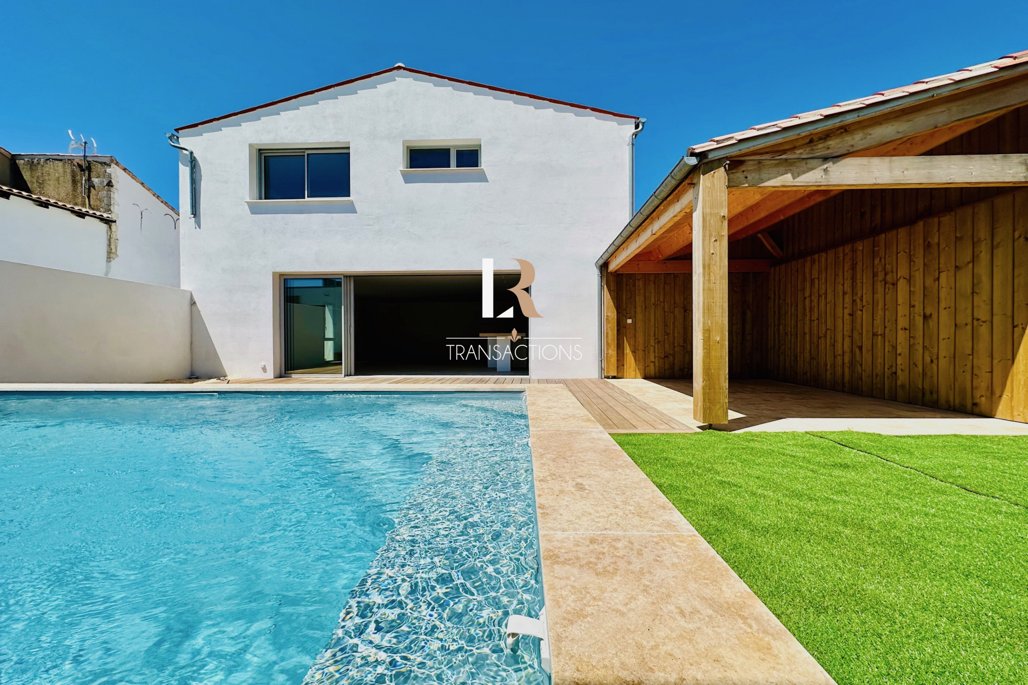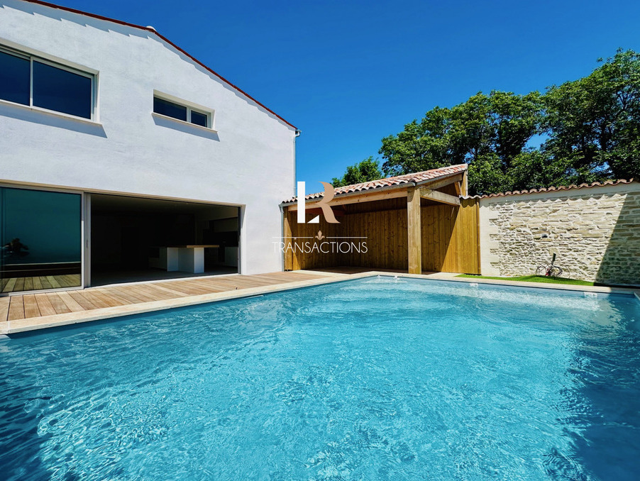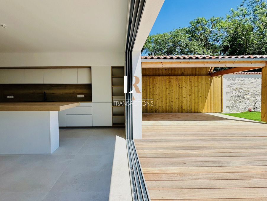 LR Transactions vous propose : Sur la commune de Lagord, dans un quartier très charmant, maison neuve (RT2012) située dans une ancienne propriété pleine de cachet. Une spacieuse pièce de vie (Env 80m2) avec une belle cuisine entièrement équipée et son îlot centrale s'ouvre sur l'extérieur par une très grande baie vitrée de plus de 6m. Un espace buanderie, un wc indépendant et un grand garage complète le rez-de-chaussée. Un bel escalier maçonné avec ses contre-marches en bois donne accès à un grand palier / bureau. Ce dernier dessert une suite parentale avec chambre dressing et salle d'eau. Et trois autres chambres dont une avec salle d'eau privative. Une spacieuse salle de bain indépendante profite aux deux autres. L'extérieur quant à lui est composé d'une jolie terrasse en bois exotique avec préau et sa piscine chauffée. Le prix d'achat est de 894.000EUR HAI, dont 4% de frais d'honoraire d'agence TTC à la charge de l'acquéreur, soit 860.000EUR Net vendeur et 34.000EUR TTC d'honoraires d'agence.Diagnostics réalisés le 2024, informations énergétique sur le bien classé A et classé A pour les émissions de gaz à effet de serre. Les informations concernant les risques auxquels ce bien est exposé sont disponibles sur: https://www.geoportail.gouv.fr/