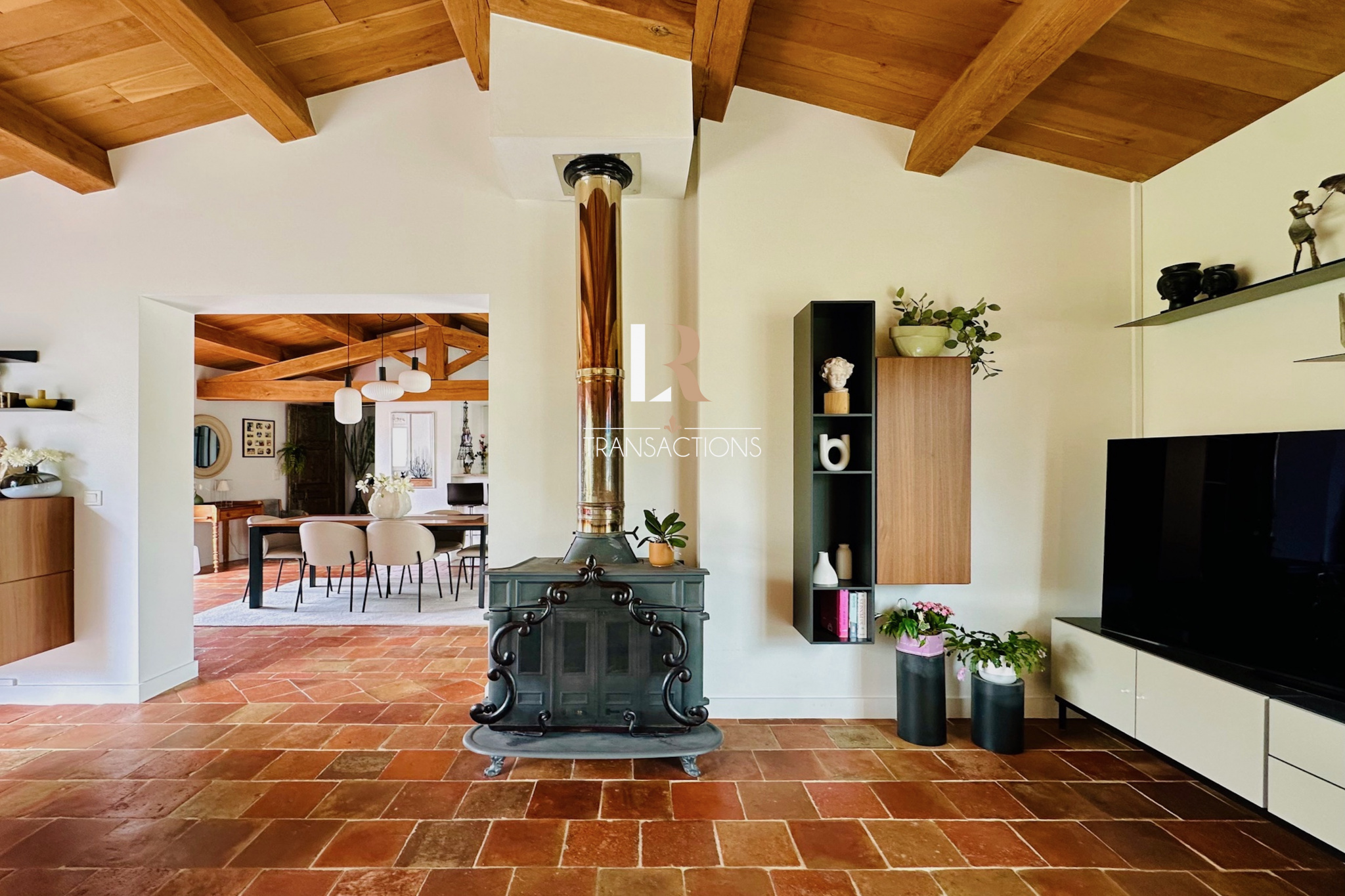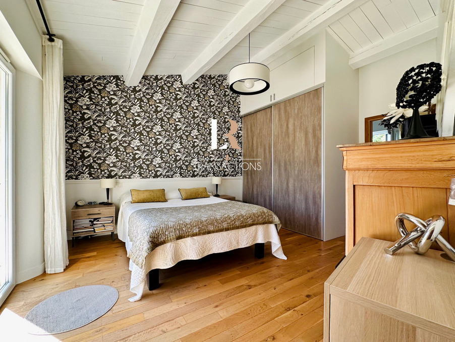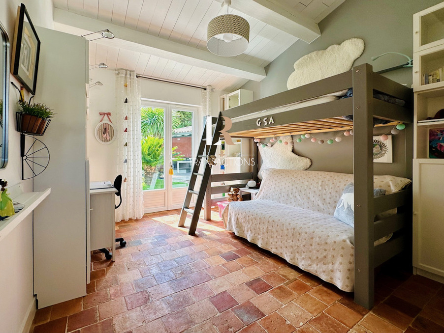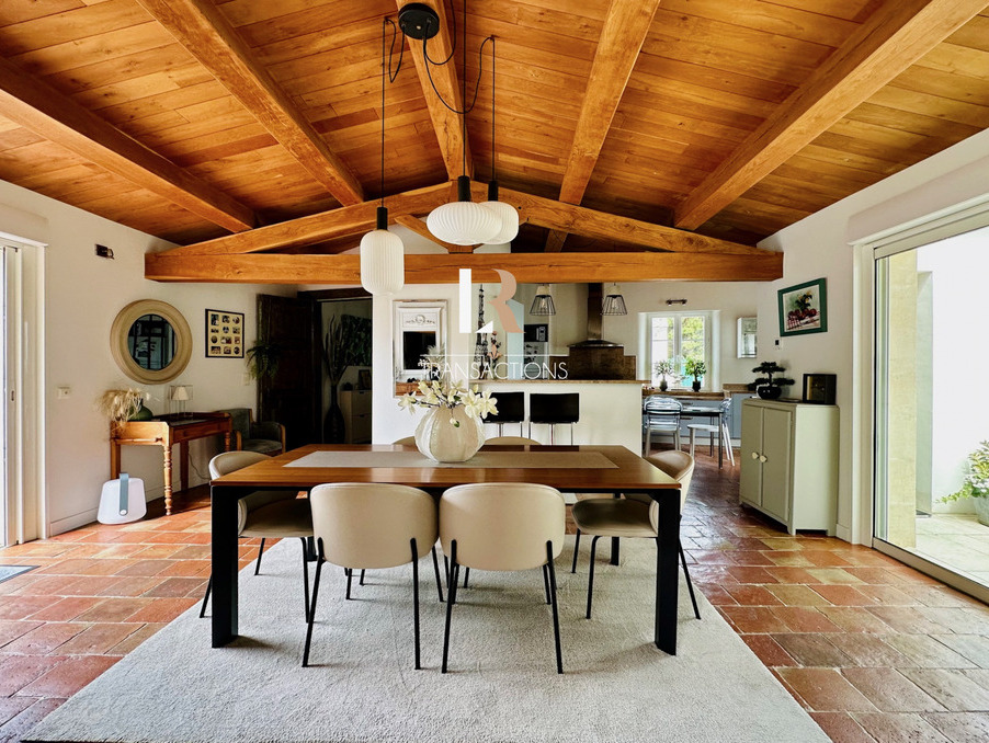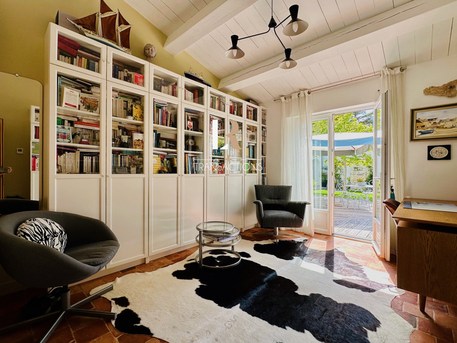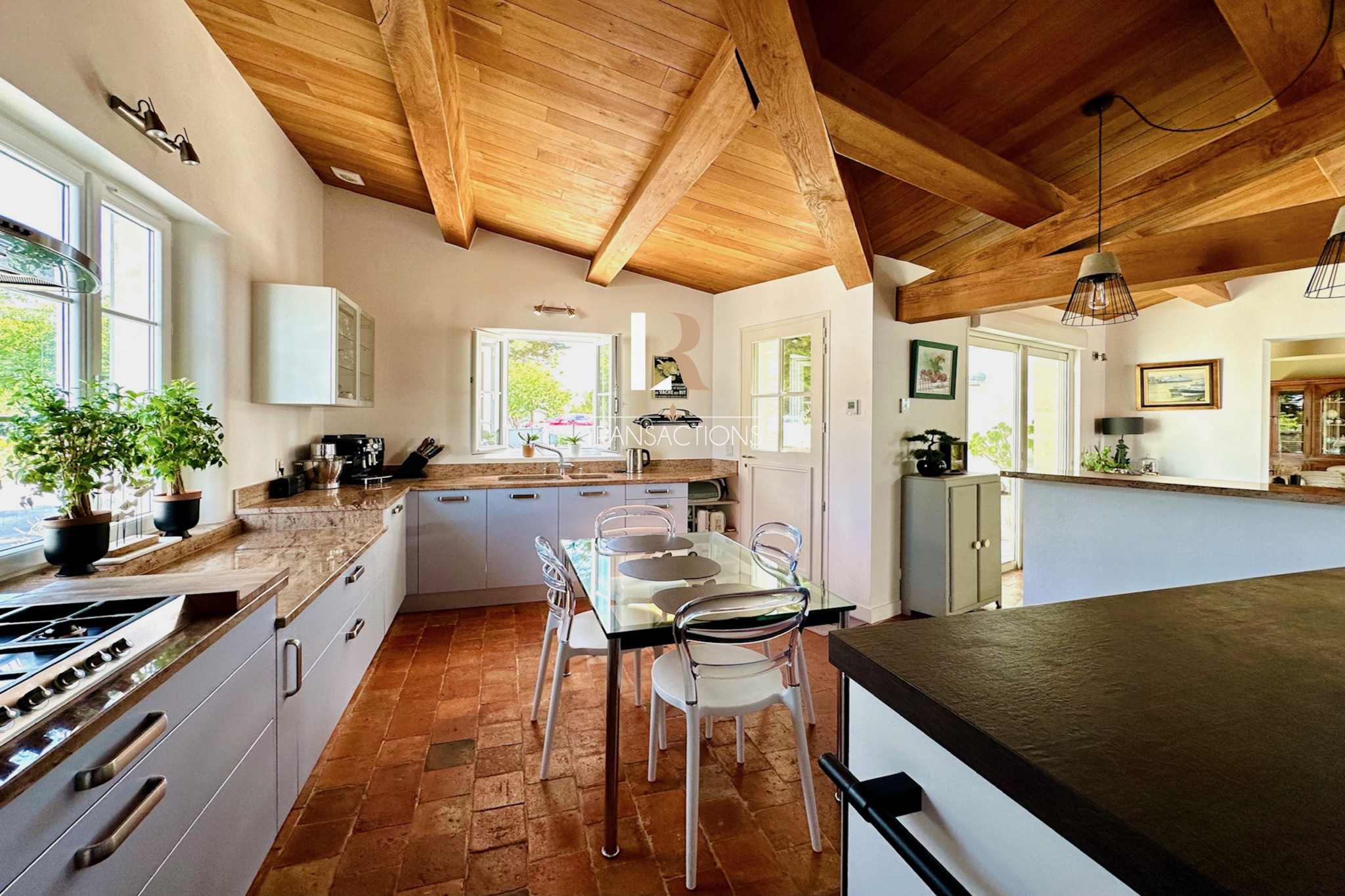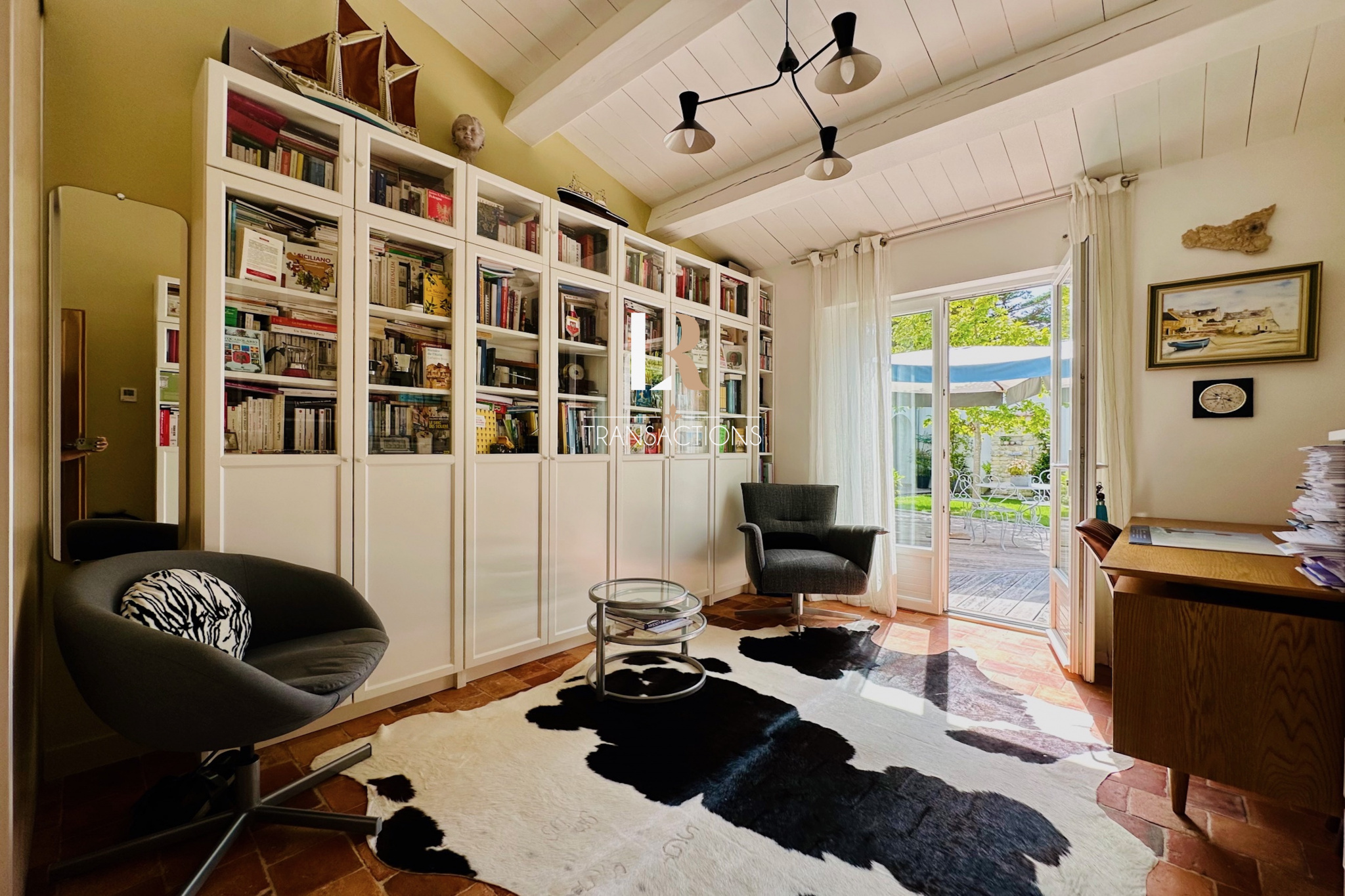 Seulement chez LR Transactions : Face à la mer, et de la jolie plage de Rivedoux Sud, maison de plain-pied aux prestations haut de gamme, construite avec des matériaux nobles, charpente en chêne massif, magnifiques pavés en terre cuites provenant d'un château parisien, des murs en briques enduits sur l'intégralité de la maison... amoureux des belles constructions, cette dernière est fait pour vous. Vous pénétrez dans les lieux par une spacieuse entrée avec placards et lumineuse grâce ses baies ateliers. Vous pourrez y contempler ses magnifiques portes en teck massif s'ouvrant sur l'espace de vie. Ce dernier est composé d'un espace repas traversant, s'ouvrant sur les deux extérieurs par des baies à galandage. Une belle cuisine entièrement équipée et aménagée profite également d'un accès à l'extérieur. Dans leur prolongement, un beau salon cocooning avec son poêle d'époque dispose des mêmes atouts. Côté nuit, une première chambre dite parentale avec placard, salle d'eau et wc se trouve à l'une des extrémités de l'espace à vivre. À l'autre extrémité, vous trouverez trois autres chambres avec placards dont une actuellement utilisé comme bureau, ainsi qu'une belle salle de bain complète. L'intégralité de la maison donne sur un joli jardin central et sans aucun vis-à-vis, et également piscinable si telle est votre envie. Vous profiterez d'un espace repas couvert parfait pour les soirées d'été. Ce dernier dispose d'un accès direct au jardin avant par un couloir couvert avec grenier. Une douche extérieur en pierre habille cet extérieur très agréable. Une buanderie et un double garage attenant complète cette maison d'exception. Pour terminer, le jardin avant à tout autant son importance et offre plusieurs stationnements. Un olivier entouré de sa belle terrasse en bois exotique vous permettra de contempler la mer en profitant du bruit des vagues. Vous n'aurez que quelques mètres pour accéder à la plage et avoir les pieds dans l'eau. Le prix d'achat est de 1.399.000EUR HAI, dont 4% de frais d'honoraire d'agence TTC à la charge de l'acquéreur, soit 1.350.000EUR Net vendeur et 49.000EUR TTC d'honoraires d'agence.Diagnostics réalisés le , informations énergétique sur le bien classé D et classé B pour les émissions de gaz à effet de serre. Les informations concernant les risques auxquels ce bien est exposé sont disponibles sur: https://www.geoportail.gouv.fr/