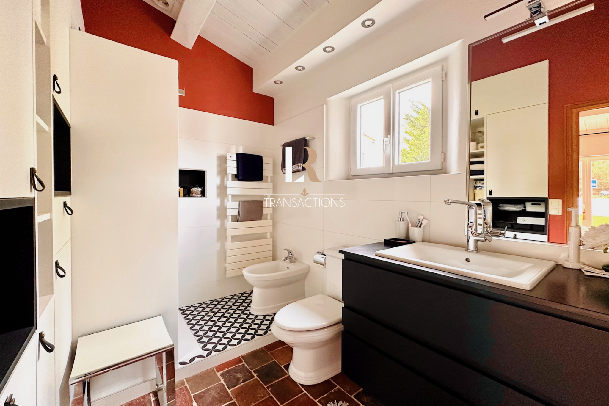 LR Transactions vous propose : En plein bourg de Lagord, à deux pas des commerces, de l'école et des transports, spacieuse maison entièrement de plain pied avec triple garage, multiples stationnemen...