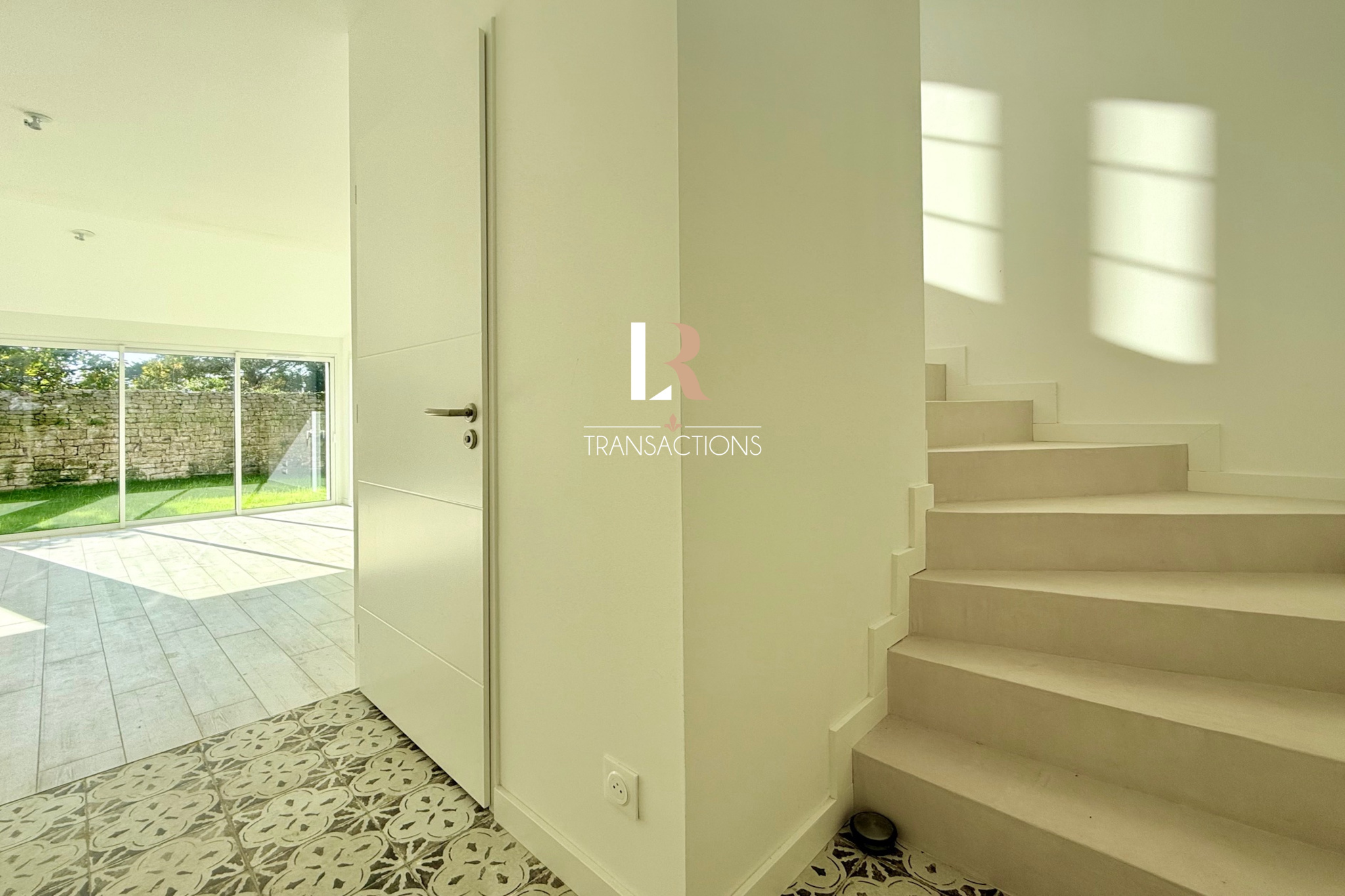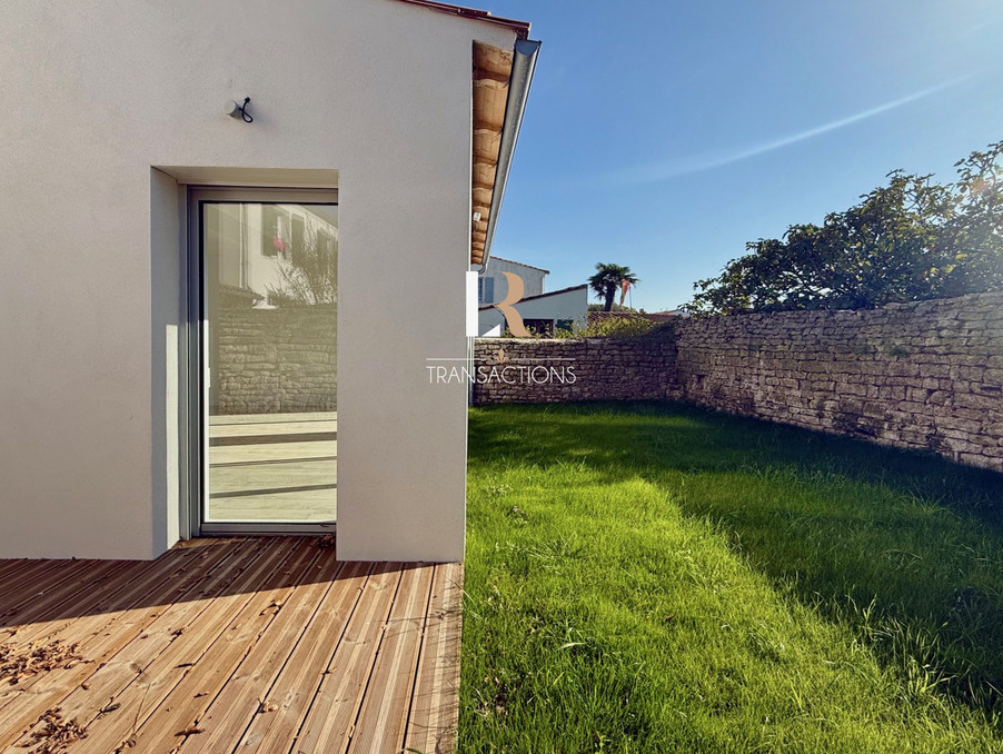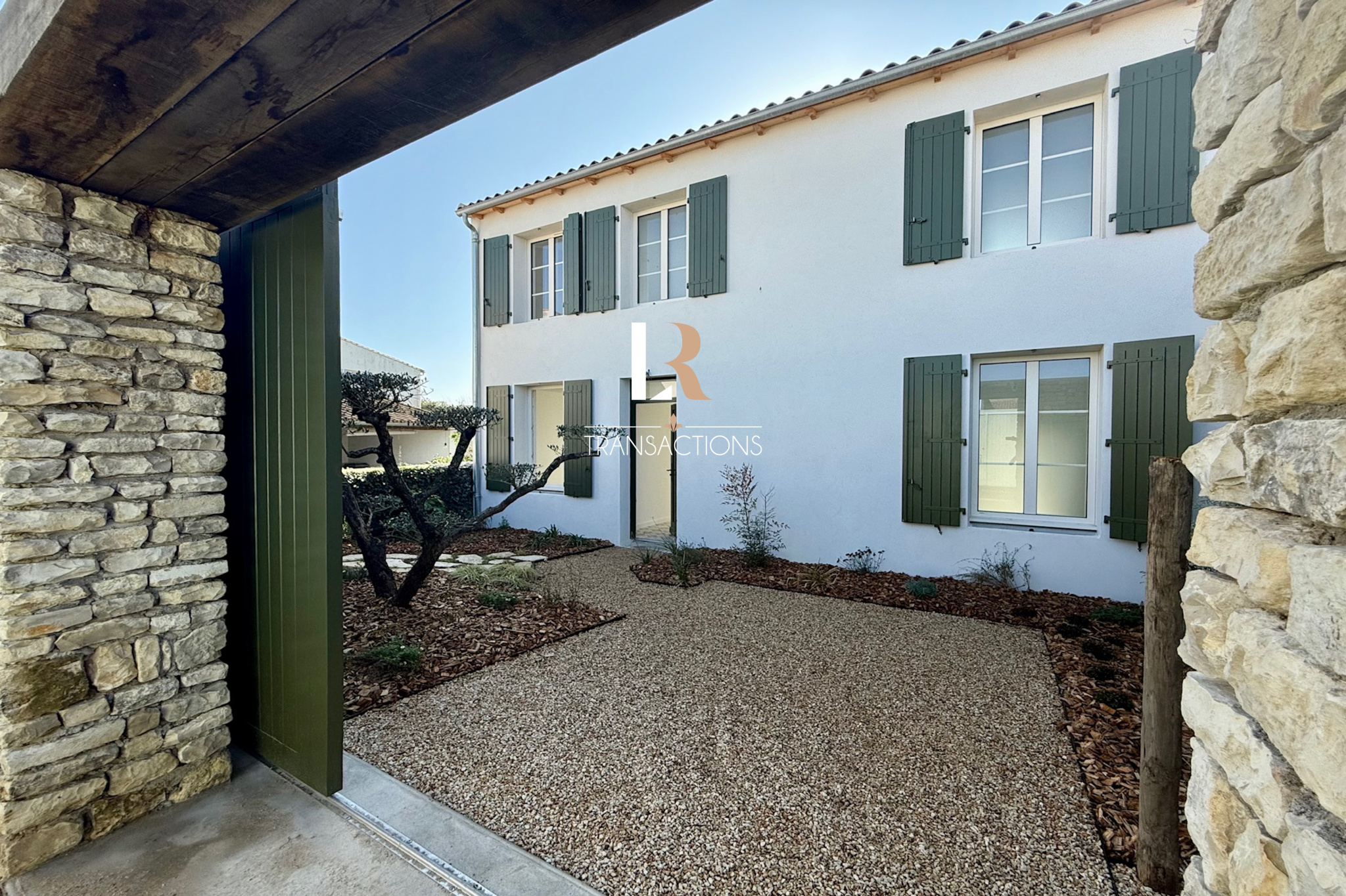 LR Transactions vous propose : Maison neuve avec frais de notaire réduits ! Dans une rue thypique et calme de la commune de Sainte-Marie, entre commerces et plage, maison neuve au style réthais alliant charme et confort des dernières normes. Un portail coulissant s'ouvre sur une jolie cour paysagée avec place de stationnement. Dès l'entrée, vous profiterez d'une perpective agréable sur le jardin. Une pièce de vie très lumineuse s'ouvre par de grandes baies vitrée sur la terrasse et le jardin sans vis-à-vis, clos de murs en pierre. Vous profiterez de trois chambres, chacune avec salle d'eau privative dont une se trouvant en rez-de-chaussée. Côté fonctionnel, vous trouverez un wc indépendant à chaque niveau. Côté extérieur, en plus de la cour d'accueil, vous profiterez d'un joli jardin clos de murs en pierre avec terrasse.