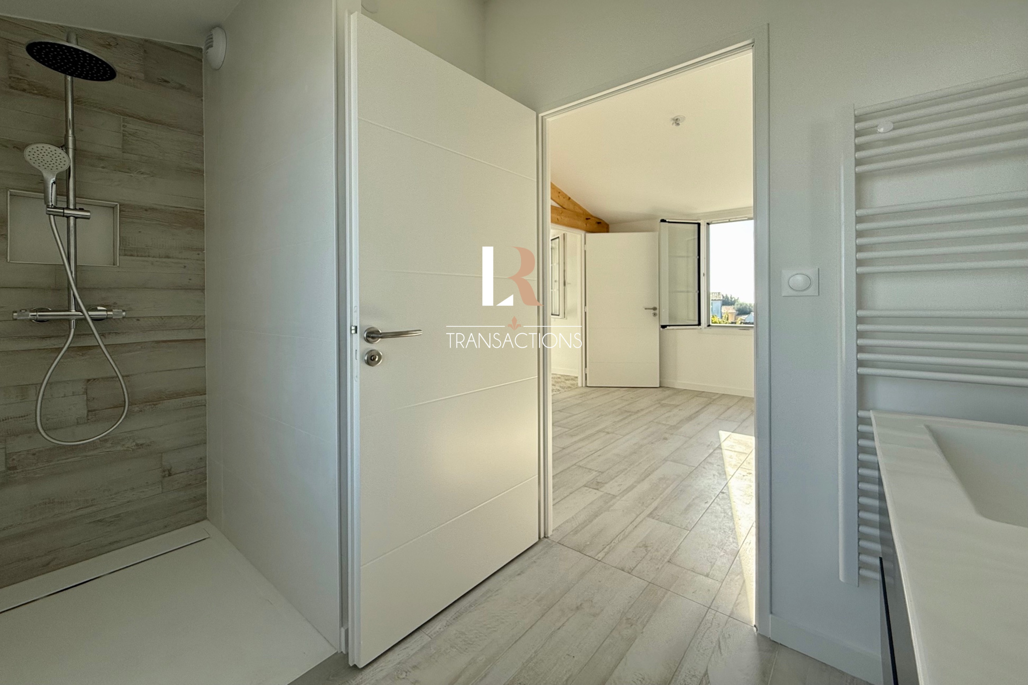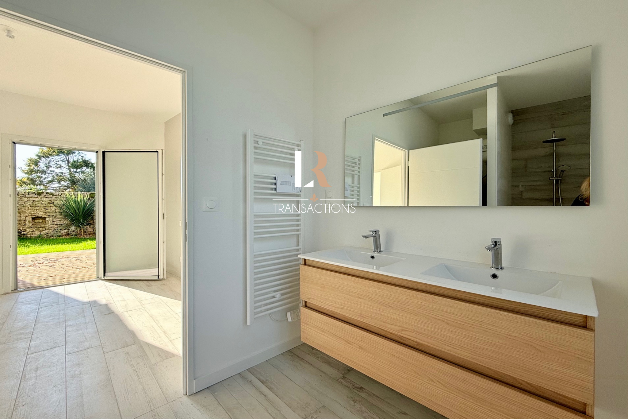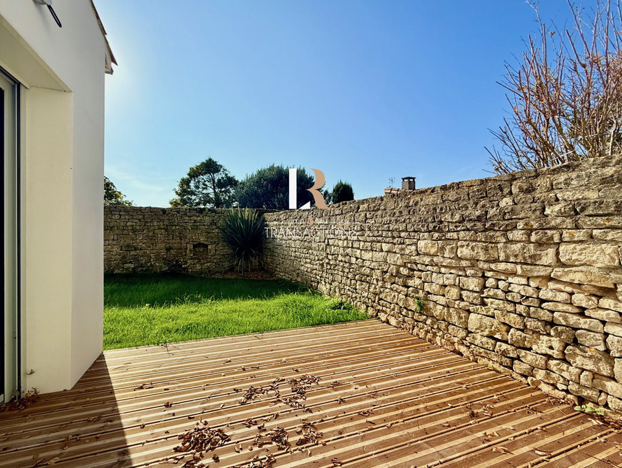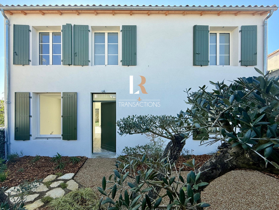LR Transactions vous propose : Maison neuve avec frais de notaire réduits ! Dans une rue thypique et calme de la commune de Sainte-Marie, entre commerces et plage, maison neuve au style réthais alliant charme et confort des dernières normes. Un portail coulissant s'ouvre sur une jolie cour paysagée avec place de stationnement. Dès l'entrée, vous profiterez d'une perpective agréable sur le jardin. Une pièce de vie très lumineuse s'ouvre par de grandes baies vitrée sur la terrasse et le jardin sans vis-à-vis, clos de murs en pierre. Vous profiterez de trois chambres, chacune avec salle d'eau privative dont une se trouvant en rez-de-chaussée. Côté fonctionnel, vous trouverez un wc indépendant à chaque niveau. Côté extérieur, en plus de la cour d'accueil, vous profiterez d'un joli jardin clos de murs en pierre avec terrasse.